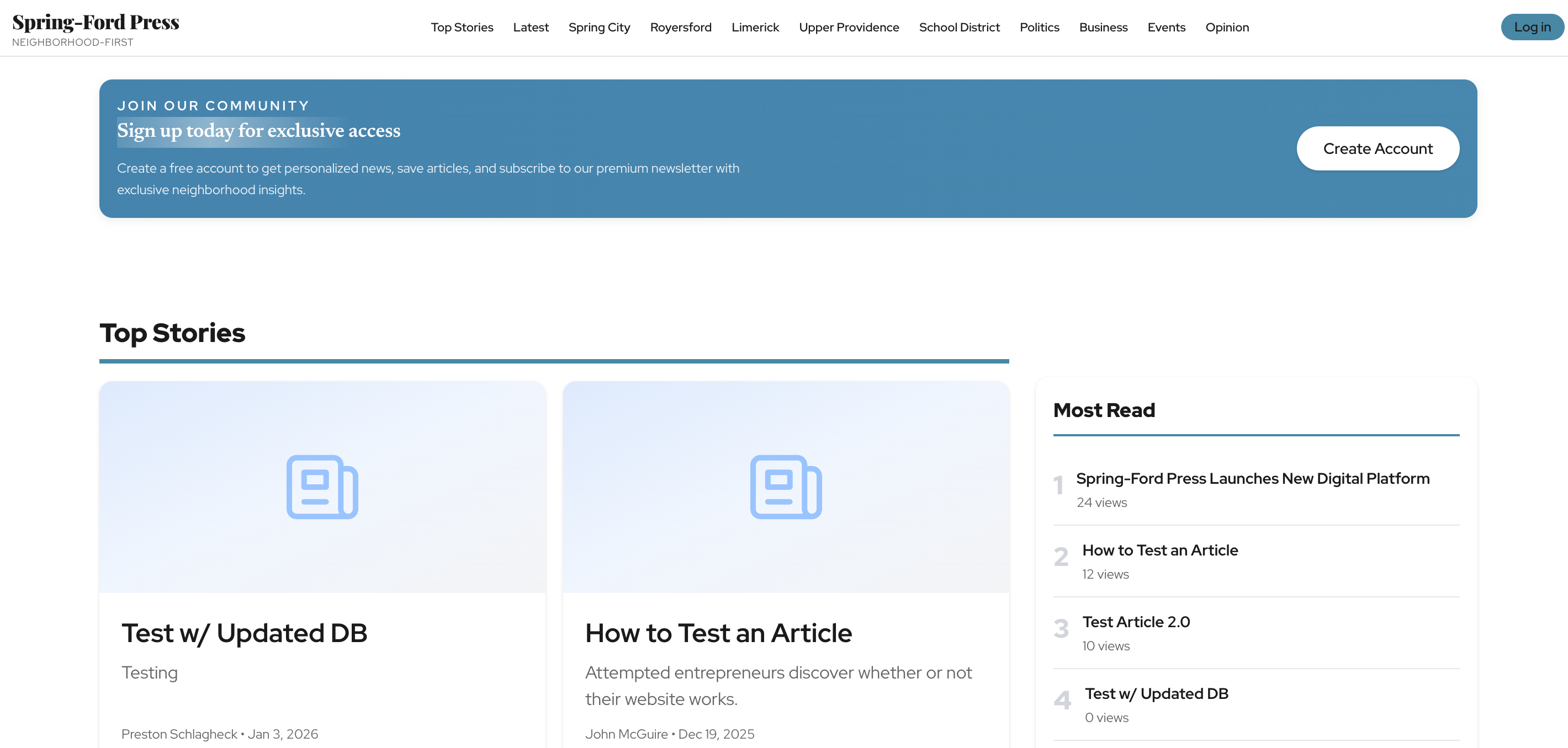 Digital-first local news outlet serving the Spring-Ford area of Pennsylvania, powered by Diffuse.AI.